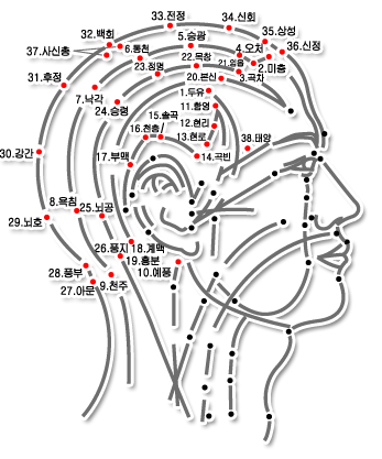 혈의 : 경락을 수통 뇌와 눈을 맑게 함